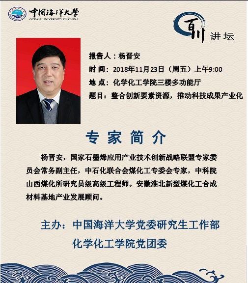 • 研究生百川讲坛-杨晋安:整合创新要素资源,推动科技成果产业化