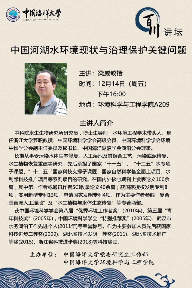 • 研究生百川讲坛-梁威:中国河湖水环境现状与治理保护关键问题
