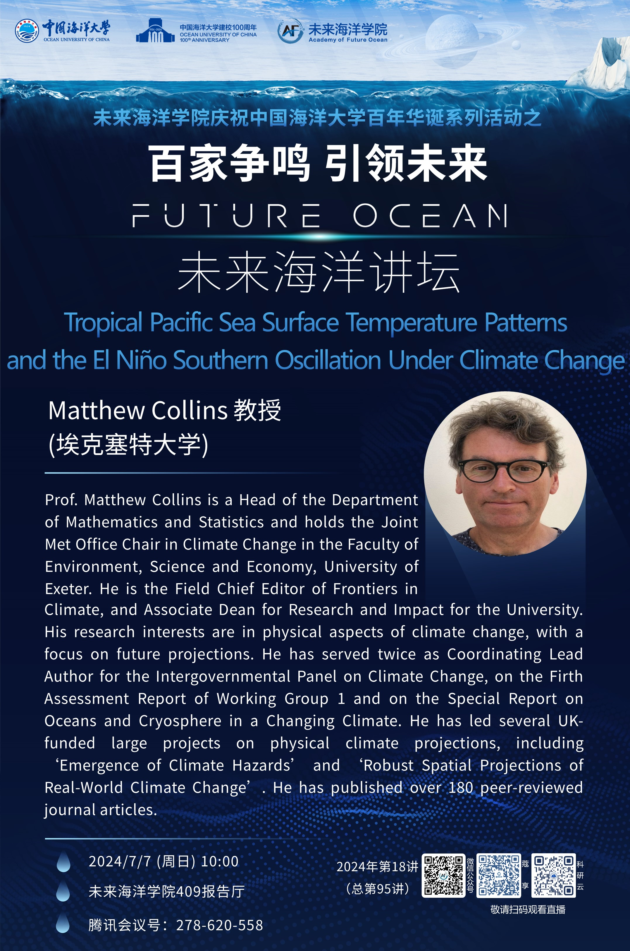 • 百家争鸣 引领未来 | 未来海洋讲坛第95讲(2024年第18讲) -Matthew Collins: Tropical Pacific Sea Surface Temperature Patterns and the El Niño Southern Oscillation under Climate Change